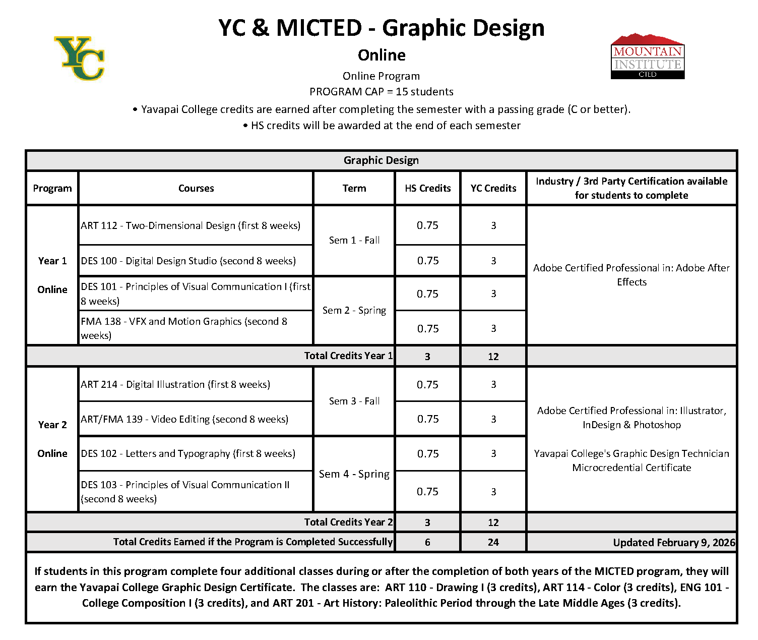 • Yavapai College credits are earned after completing the semester with a passing grade (C or better).